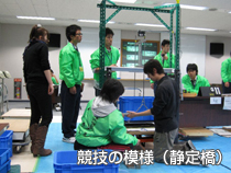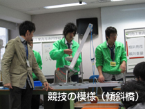 今年は、12月13日、14日に香川県高松市で開催されました。今年の規定は、厚さ1mmのケント紙で、静定橋と傾斜橋の2つの橋を製作し、そのデザイン性、耐荷重を競うものでした。5月から製作を開始し、大会本番まで製作しては載荷実験をし、その結果を参考にして橋を改良する、という地道な作業を繰り返し行ってきました。