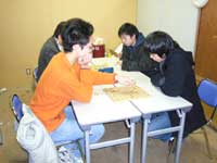 現在部員40名ほどが2チームに分かれ、それぞれ大型・中型・小型機などの3台のロボットを製作中。その名前は、『凸凹忠』と『演技達磨』。「地区大会の決勝で、この2機で群馬高専同士の対戦になるように勝ち進む」と部長の閑野君が誓ってくれました。みんな楽しそうに作業をしていました。将棋愛好会